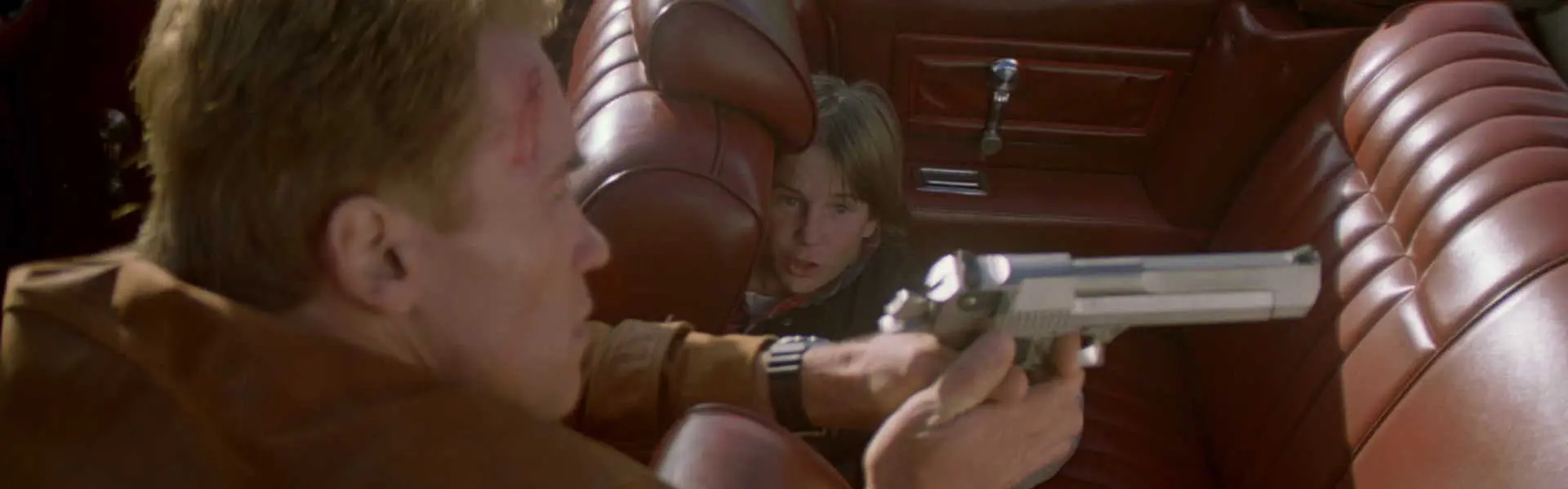 Как фанат фильмов о Слейтере, он знает все клише, все героические фразы и всю его историю. история героя и ребенка развивается, когда Дэнни помогает Слейтеру бороться со злодеями и одновременно убедить героя боевиков, что тот является всего лишь вымышленным персонажем. А в это время символ воплощения зла в фильме, обходительный убийца со стеклянным глазом по имени Бенедикт (Чарльз Дэнс) получает волшебный билет и попадает в мир Дэнни. И вот уже мальчик вместе со Слейтером переносятся в реальный мир где герою попутно предстоит узнать, что в реальности пробивать стекло очень больно, а пистолет нужно перезаряжать.